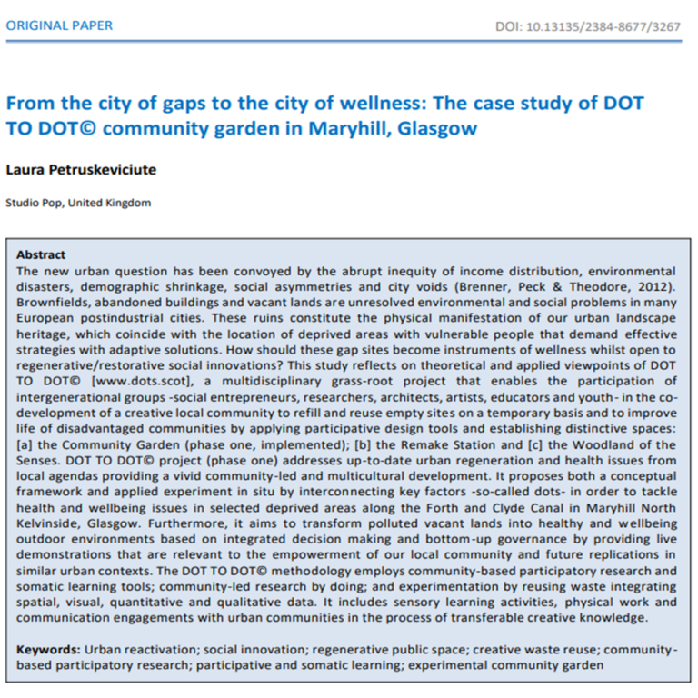 From the city of gaps to the city of wellness: The case study of DOT TO DOT© community garden in Maryhill, Glasgow.